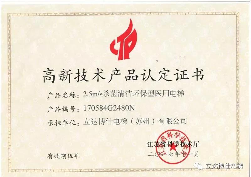 針對醫院等特殊使用環境,立達博仕電梯現有產品體系中已推出“2.5M/S殺菌清潔環保型醫用電梯”,該電梯產品于2017年問世,已安裝于多家醫療單位內。